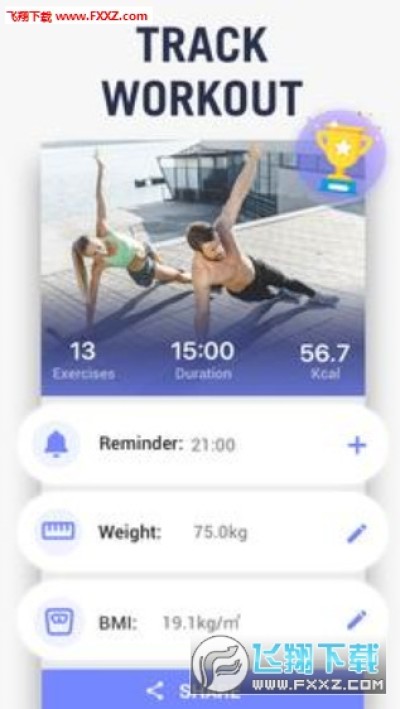《30天平板支撑运动》提供了不同的平板姿势变化,以便帮助您有效的减肥、增强体质并练出更强健的核心肌群。静态和动态的平板运动相结合,帮助您更快速的燃烧多余的脂肪。每天只需要7分钟就可以燃烧卡路里获得魔鬼身材!30天减肥计划包含3种难度级别,完全适合所有用户,不管是男性还是女性。您还可以根据自己的喜好定制锻炼计划。不需要去健身房也不需要任何设备,您可以随时随地进行平板支撑锻炼,就是这么方便。
