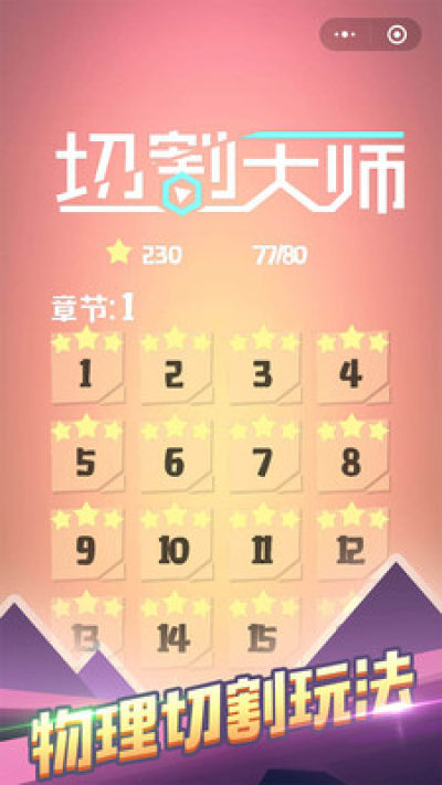 《切割大师》是一款充满趣味的物理切割休闲单机游戏。以触屏划线为基础操作,充满策略性的物理切割为过关条件,通过各种策略划线操作感受物理动力学之美。只需要开动脑经动动手,就能享受游戏趣味!游戏画面制作简洁时尚,关卡数量超多,采用节奏轻松明快风格的音乐。快来体验切割的快感吧~