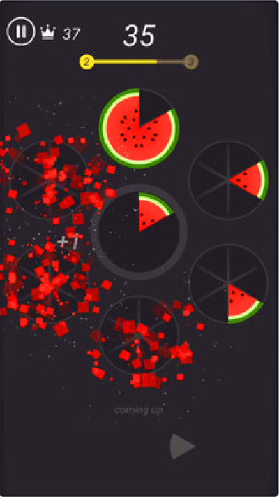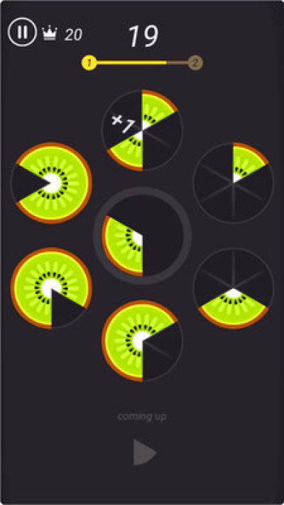 3、作品是一款设计了简单玩法的趣味性内容,融入了非常益智的游戏合集,玩家要将不同形状的水果拖放到外侧的圆中,并填满这个圆性触发消除并得分