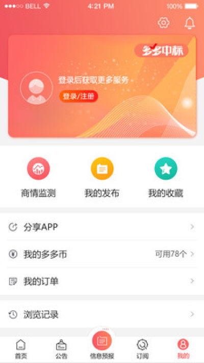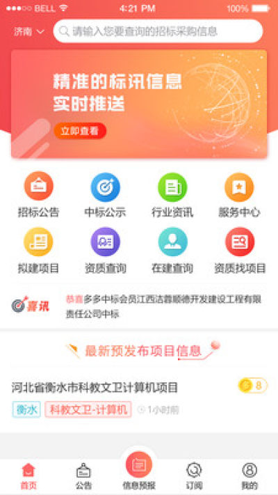 《多多中标》app是一款专业的招投标服务平台,为用户推送各个行业的招标信息,让用户能够及时的把握住商机,同时让你实时掌控审批项目;需要的话就下载试试吧!