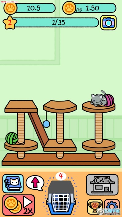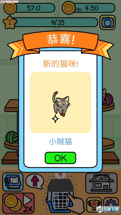 一款卡通猫咪游戏,里面有非常多不同种类的猫咪,你需要去饲养它长大,不同种类的猫咪还可以合并在一起升级成为不同的的品种。