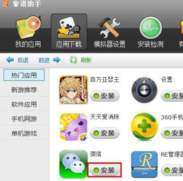这里我们打算先来体验下电脑版微信,找到微信立即点击安装,开始准备安装。