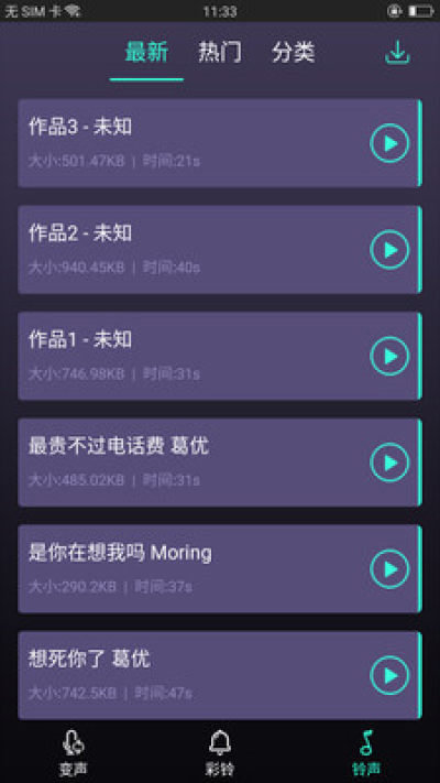 很皮变声器app是一个多功能的变声软件,不仅可以通过各种各种搞怪的方式,让你的声音更有趣,还有海量的彩铃可以选择播放和下载,并且支持录音,感兴趣的朋友们,快下载很皮变声器app体验更多功能吧。