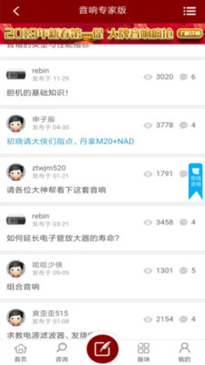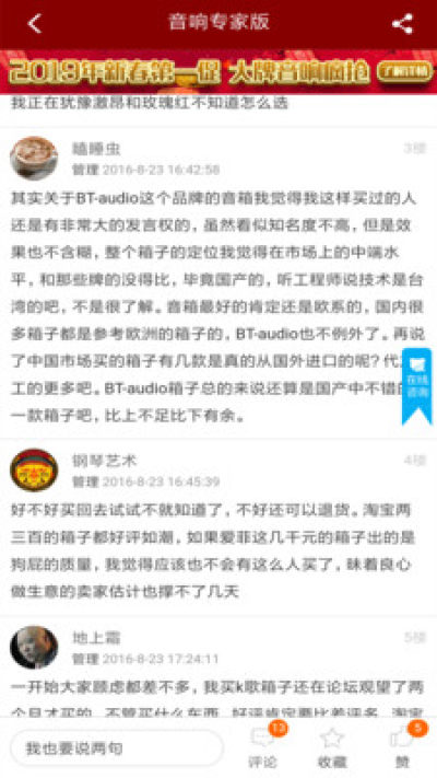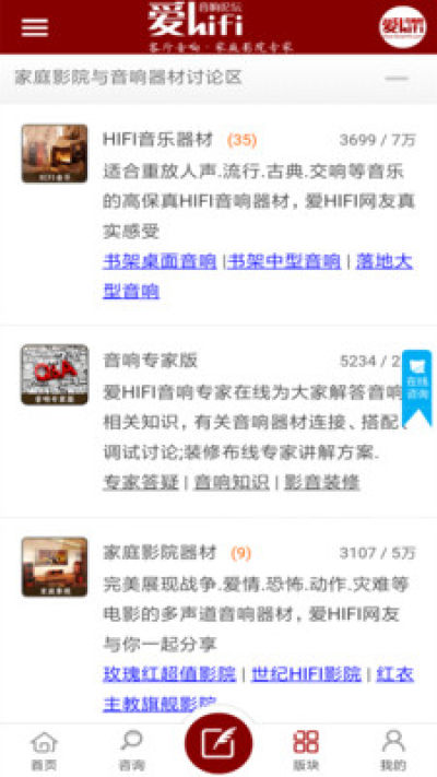 兼顾论坛功能,可以在线和音响大咖交流问答。