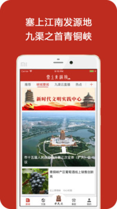 云上青铜峡是青铜峡市官方新闻客户端,是九渠云融媒体打造的一款接地气、说实话、重民生的精品APP。