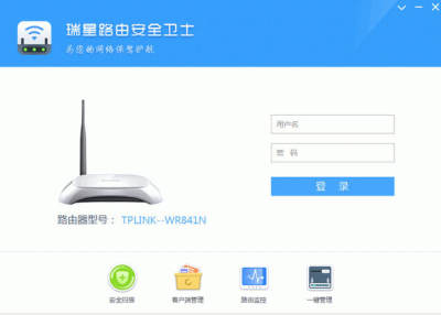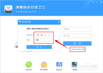 安装并运行“瑞星路由安全卫士”,在弹出的登陆界面中输入路由器“用户名”和“密码”,点击“登陆”按钮。