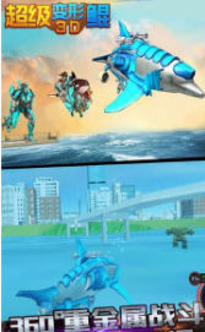 2、这是一个拥有庞大真实世界观的3D游戏,机器人可变化为3D真实鲨鱼,在水中自由潜行,也可以变成人形,在模拟真实城市中自由行走