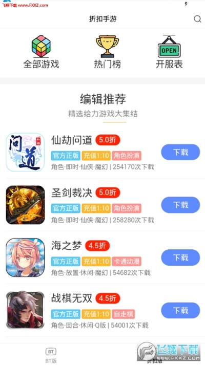 目前开放折扣版和BT版手游下载