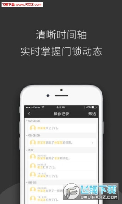 3、分发虚拟钥匙:管理员权限的用户,可以对贴锁功能进行设置,并向亲朋好友、租客、上门保洁、维修人员远程分发虚拟钥匙,可设置其身份,主人或访客,还有使用时段,过期即失效。访客可以直接在微信小程序上接收,无需下载APP。这个功能算不上高频,可当家中没人又临时又亲朋来访时,它就派上用场了。所有开关门信息在有网络的情况下都会实时推送到App上,管理员和主人可以随时查看。