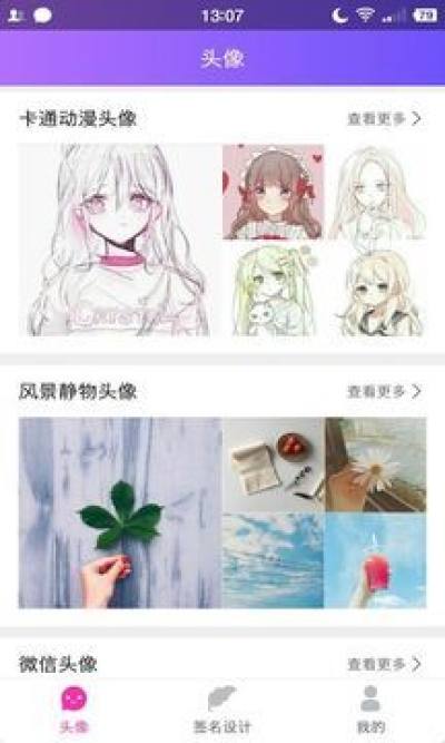 【个性】提供10大分类,200多个子类,分类清晰明确,快速定位自己的爱好。让你的头像与众不同,个性十足。
