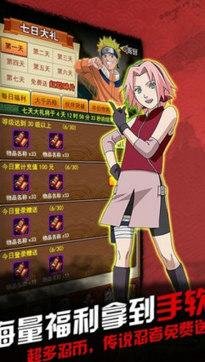 4.首冲不要998!不要198!只需6元即可获得丰厚首冲礼包,高级忍者装备免费送~