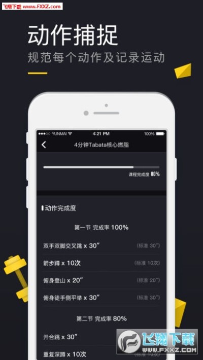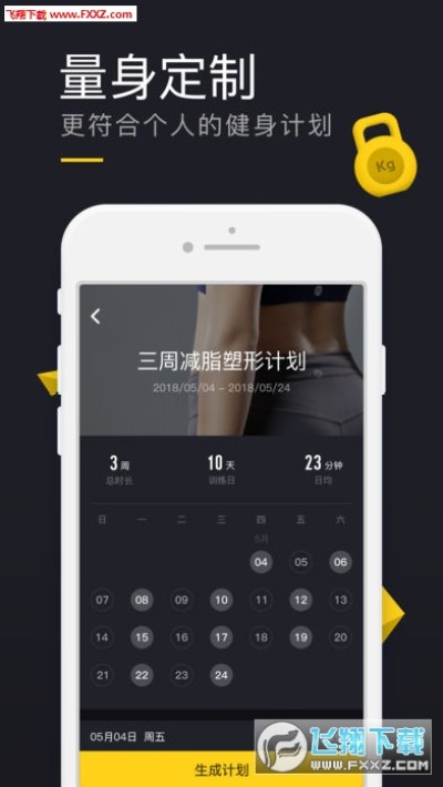 训练计划根据人群、阶段、年龄段、健身目标等数据进行科学的组合编排,且更适合上班族及无器械等人群