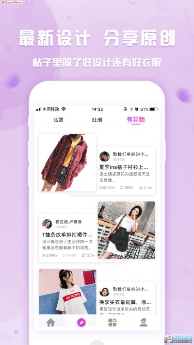 异平台app是一款手机购物平台,这款软件主要是提供给各种各样的服装购物服务,在异平台app上用户可以找到不同设计风格的衣服,都是原创的哦,在这里也能找到不同的社区可以进去聊天等等,快来下载吧!