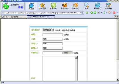 搜索:用户可以在这里搜索站内新闻、短片、FLAH、歌曲等。点击后会跳入浏览器进行浏览。