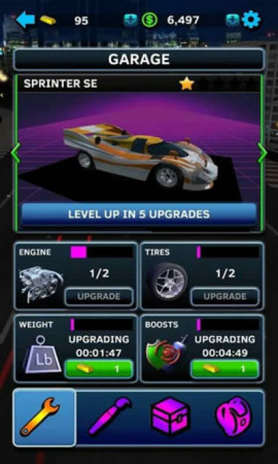 在深夜狂飙手游中,游戏创新采用了单手操作的操作玩法,同时玩家将选择一辆自己的跑车,不断的在公路上飙车,甩开路上的车辆赚取分数来将跑车尽可能的升级。