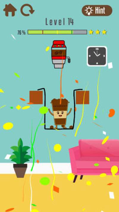 画线以创造咖啡到达悲伤咖啡杯的路径。 完全用咖啡填充,让悲伤的咖啡杯开心。 尝试找到自己最好的方法来绘制线条并完成每个级别而不使用提示。 完成3星级的所有级别,玩得开心。