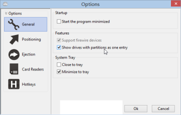 首先是在「General」里,你可以设置 USB Disk Ejector 启动后的窗口显示情况,是一启动就最小化还是最小化到托盘里。
