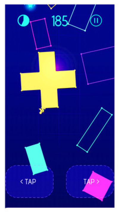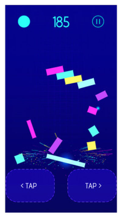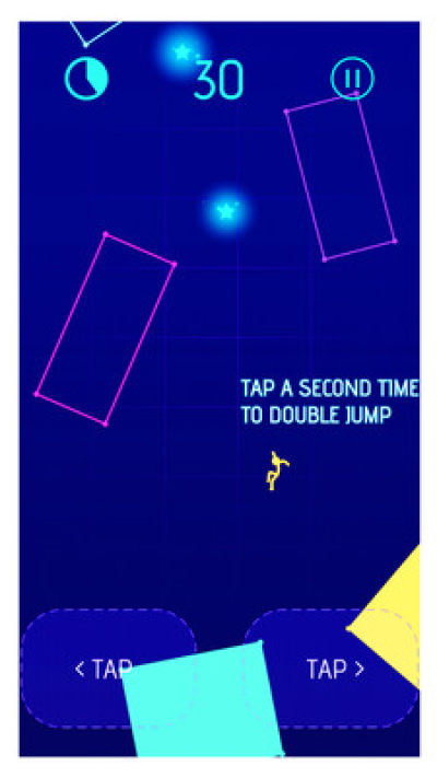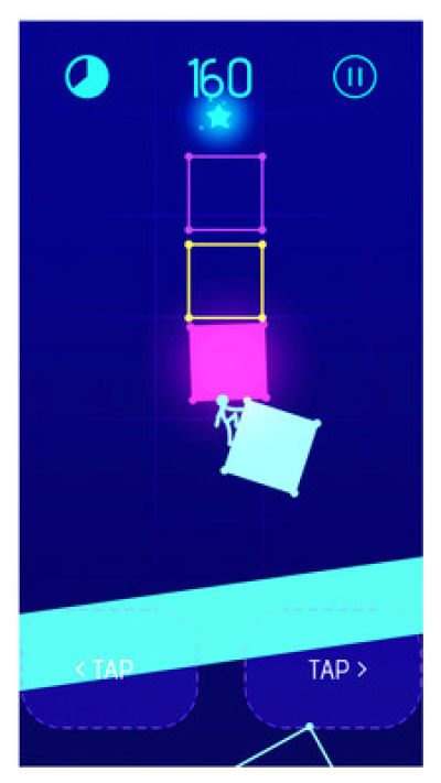 摆动,跳跃,翻转和滑动你的火柴人翻转主体从一个霓虹色的形状到另一个,使它们发光和发光。