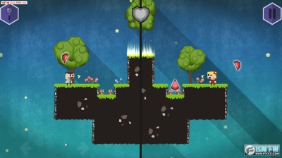 情路坎坷,一路上地刺、深渊各种机关挡道,一方挂掉就会game over。唯一可以帮助他们的只有“墙壁”。利用墙壁挡住其中一人前行的路,就可以让另外一个人自由行动。