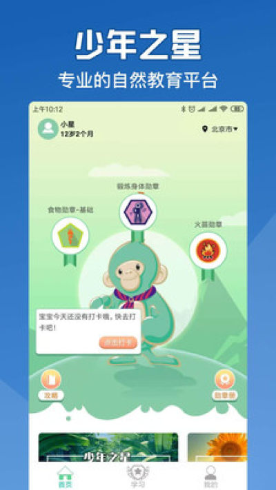 少年之星app是一个自然教育的学习平台,针对3——18岁的青少年推出自然教育的课程,涵盖的教学内容丰富,帮助少年们全面的、健康的成长,在少年之星app,少年们还可以进行打卡挑战,有相应的奖励可以领取。