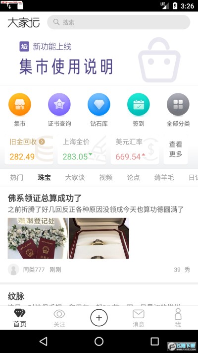 大家坛app是一款由珠宝大家坛社区推出的手机app,这款软件是给用户提供各种各样的珠宝类的版块,在大家坛app上用户可以查看信息,查看各种价格行情等等,非常的全面,需要的快来下载吧!