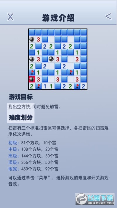 一共有六个扫雷区可供选择,各扫雷区的扫雷难度依次递增。