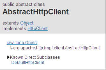 很明显,AbstractHttpClient是不能直接用的,因为是个抽象类。不过他有个子类DefaultHttpClient,这个子类之前看到过了吧。