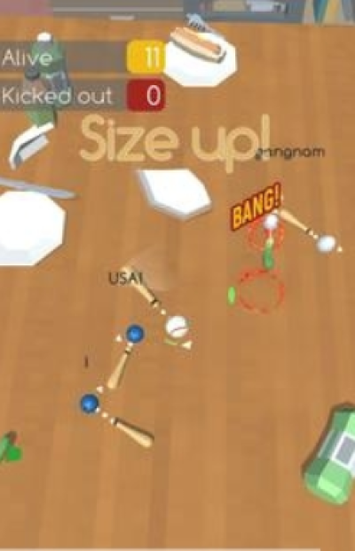 在Bang.io,不管你是谁-一个鸡蛋还是一个保龄球。只需与你的对手砰的一声,并变得更大!用黄瓜或球棒把他们踢出田地。最后一个!