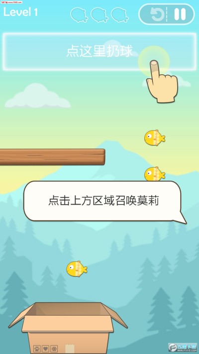 游戏目标是帮助一只呆萌小猫安全地回到她的纸箱子中(你知道猫咪最爱住在纸箱子里了~)。为了达到这个目标,你可以移动场景中的数个反弹球来将从上方落下的猫咪反弹到纸箱中,同时猫咪落下的位置也是由你来决定的。在反弹猫咪的过程中,你不能让她碰到那些锋利的齿轮,同时还要让她吃到场景中的小鱼。
