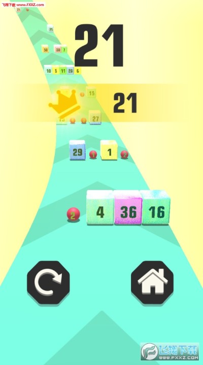 游戏界面简单,操作极易,玩家只需通过滑动屏幕控制蛇的运动方向与速度。方块上的数字表示需要用多少球才可以打透。