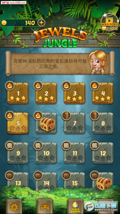 宝石满满的密林中享受三消游戏带来的游戏乐趣。乐在其中,其乐无穷!