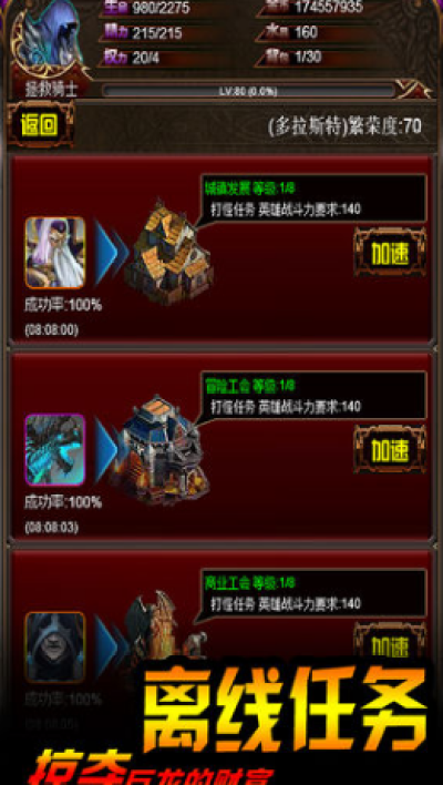 自动打怪和闯关,离线一定时间后获得经验金币奖励