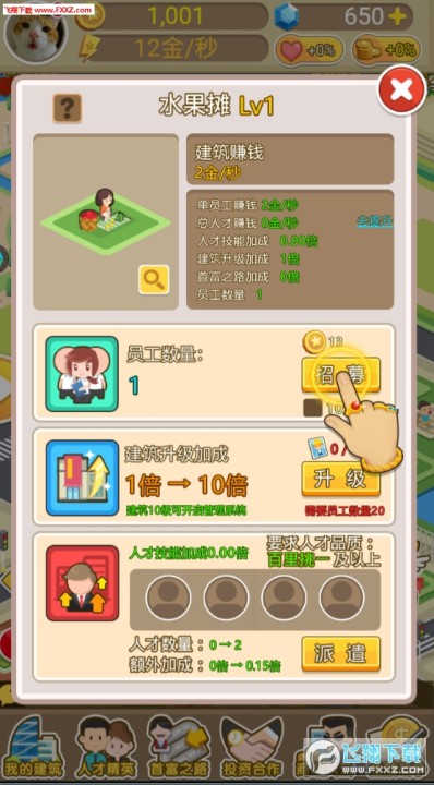 3.招揽更多的员工人才,帮助你管理和打理公司,发展其他的分公司,与其他商业巨亨交流心得。