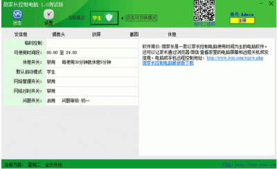 5、然后点击上面的当前模式:家长,就会切换为学生模式。如果当前时间段是不可用,电脑就被锁屏。