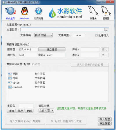 水淼mysql文章入库助手 1.0.0.0简体中文绿色免费版