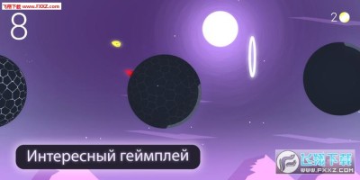 操作迷路的史莱姆,弹跳飞跃,穿过光环,获得金币。注意控制角色的惯性,跟随星球的转动方向进行移动,躲避星球上的尖刺陷阱。