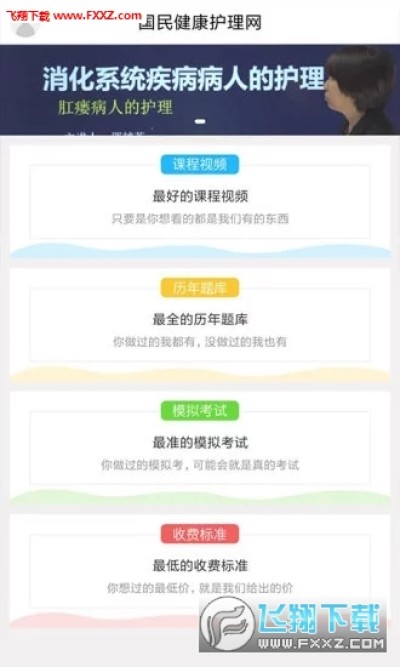 国民健康护理网是,面向护理学校,提供线上视频,试题,模拟习题支持的内容平台。用户可以在平台上查看名师讲座。做对应的习题练习。更好的应对,护士考试。