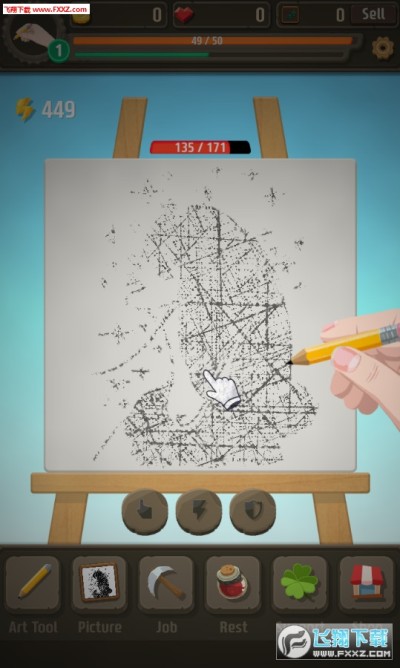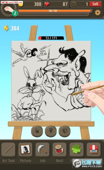 一款轻松休闲,愉快好玩的点击放置收集类手游!最近这些放置点击类手机游戏非常地流行!只要你通过金币购买相应的画笔、画质以及颜料等等工具,就能一步一步让游戏中的画家绘制画作,并可以卖钱收获更多的金钱来提升你的画技等等!里面有很多的素材,利用这些素材按照自己的想法去绘制一些新奇的画面,还可以将自己的作品进行分享,用金币购买好的素材,还可以解锁新的画画图案,一步步的成为一个小艺术家!