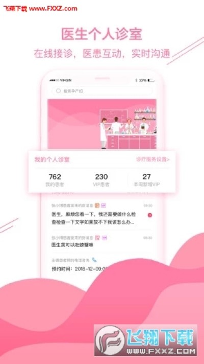 【工作台】医生的个人诊室,医生可自定义设置服务价格和时间,为孕产妇提供在线咨询服务,包括图文咨询、报告解读、电话咨询,医患实时沟通,医生多点执业的新方式