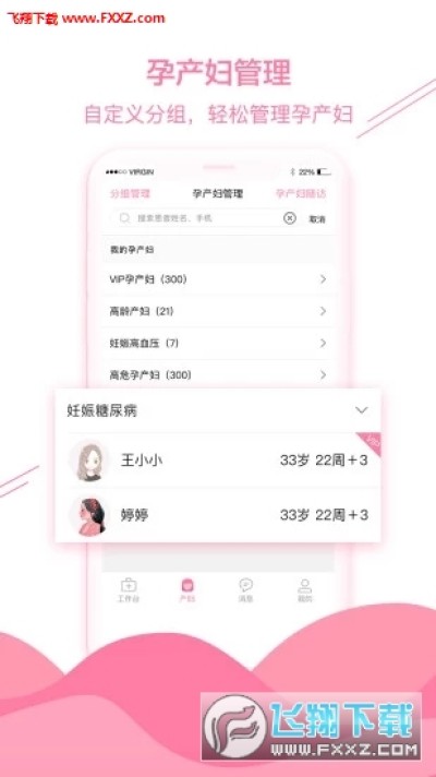 【孕产妇管理】医生可将自己的孕产妇进行分组管理,可查看绑定孕产妇的健康档案,患教随访,轻轻松松实现院外孕产妇管理
