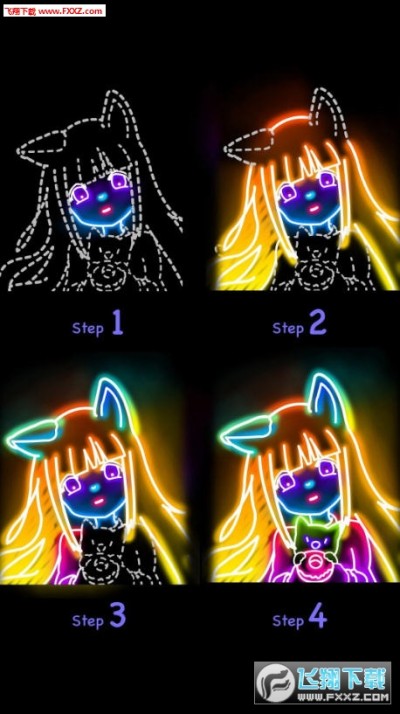 1.荧光画笔,随意切换自己喜爱的颜色 2.绘画+涂色:给你自己的作品涂上色彩 3.详细的教学步骤:无需任何技巧,也能画出美丽的作品