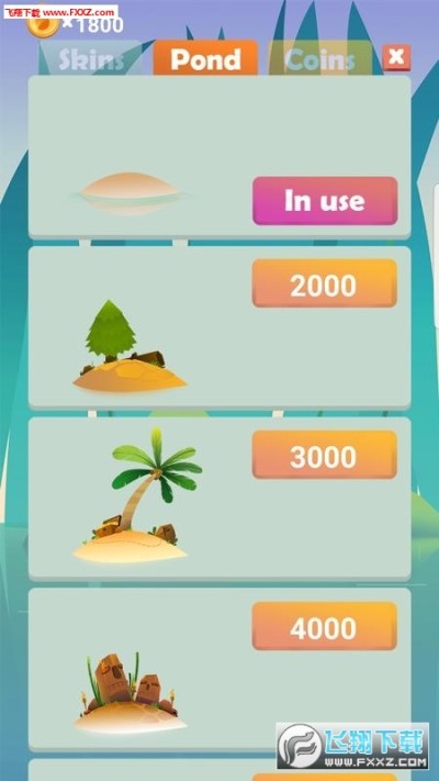 画面高清亮丽的以青蛙为主角的休闲游戏,在Frog Island中玩家通过点击操作青蛙去吃各种小虫,并收集金币,使用金币可以解锁更多的皮肤和场景,很可爱的画面和操作体验。