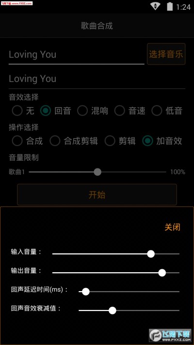 3.音乐调音:音乐效果添加,可为音乐添加和声,回音,混响,音速等多种效果。(eg.可以用添加音效后的音乐设置自己的个性铃声)