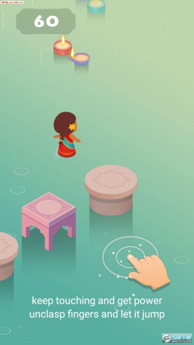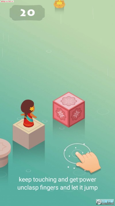 1、游戏的操作简单,计算好小女孩与方块之间的距离,然后按下屏幕,让它能到达对面的方块即可。