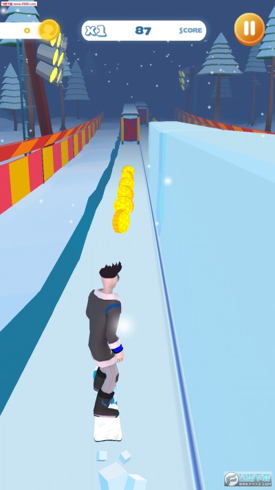 雪地滑板的题材很少见,这款游戏是以跑酷的形式进行的,玩法也很简单,就是控制角色左右上下来躲避障碍收集金币。还在这款游戏的模板还不错,作为休闲街机游戏,娱乐性质居多,至于挑战项目,就看你怎么看待了。滑雪这项运动在身处南方的我,从来不曾体验过,但是滑板,我还是了解的,当这两项运动结合在一起,它的极限,我只能用艺高人胆大来形容,如果是游戏,那么就不同了。