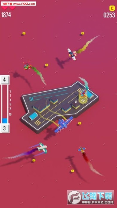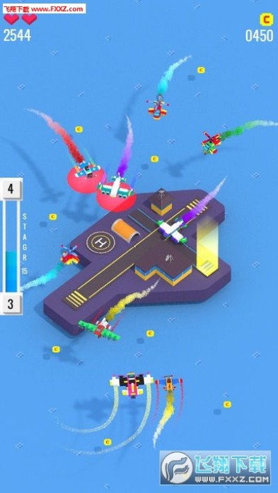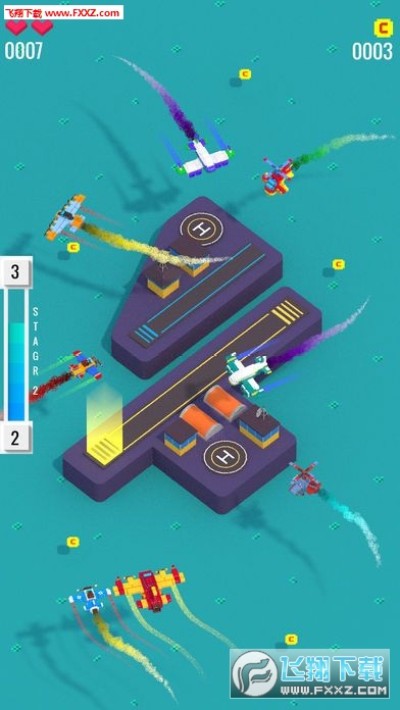1、简洁的游戏画风,与卡通的飞机模型和场景,让玩家可以放松身心,轻松地投入到游戏中;