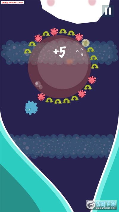 在游戏中,玩家需要通过摇晃手机来控制细菌的左右方向,点击屏幕之后,游戏就会开始,摇晃手机改变病毒的左右方向躲避,障碍物。