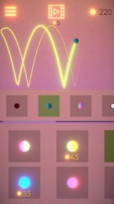 游戏采用非常鲜艳的背景颜色,搭配小球变化的霓虹色尾迹,呈现出非常惊艳的视觉效果,冲击力极强。