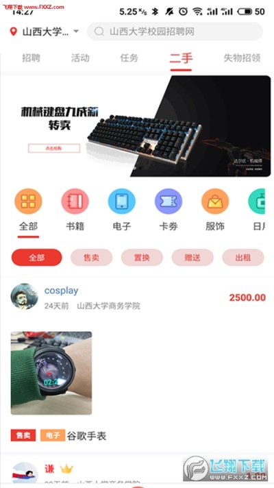 二手学生闲置物品,可售卖、可置换、可赠送、可出租物尽其用,交易安全可靠