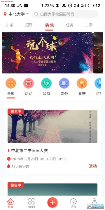 校园榜app是一款手机校园类的社交服务平台,这款软件是专注于在校园内提供社交还有各种生活服务方面的手机服务,在校园榜app上各位用户可以参与校园的活动,报名兼职,还有二手市场等等,快来下载吧!